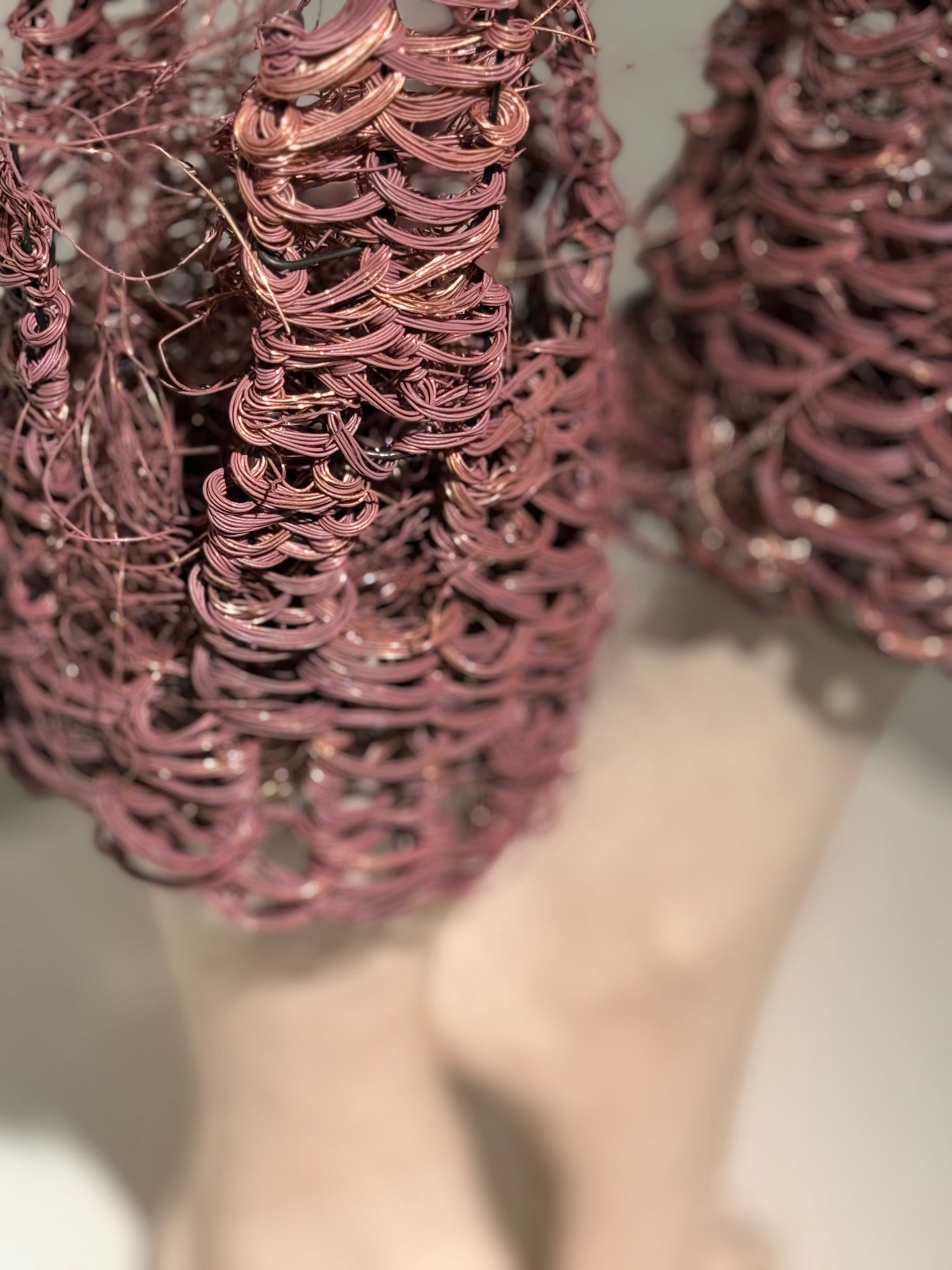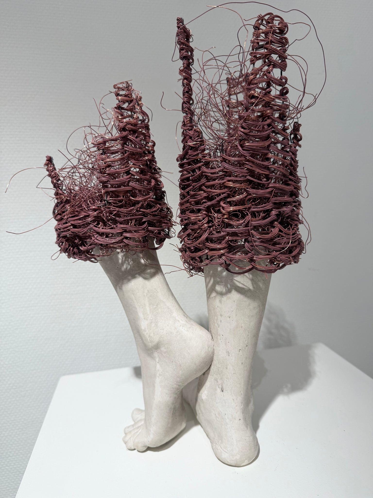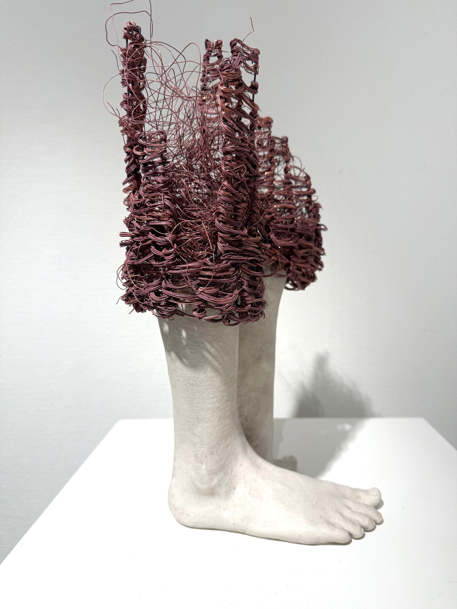 Skulptur, uten tittel, av Lene Kilde. Skulpturen er unik. Teknikk, Jesmonite, stål og kopper. Høyde 40cm, bredde 20cm, dybde 19cm. Signert av kunstner. Pris, 18.900,- (Inkludert 5% kunstavgift).