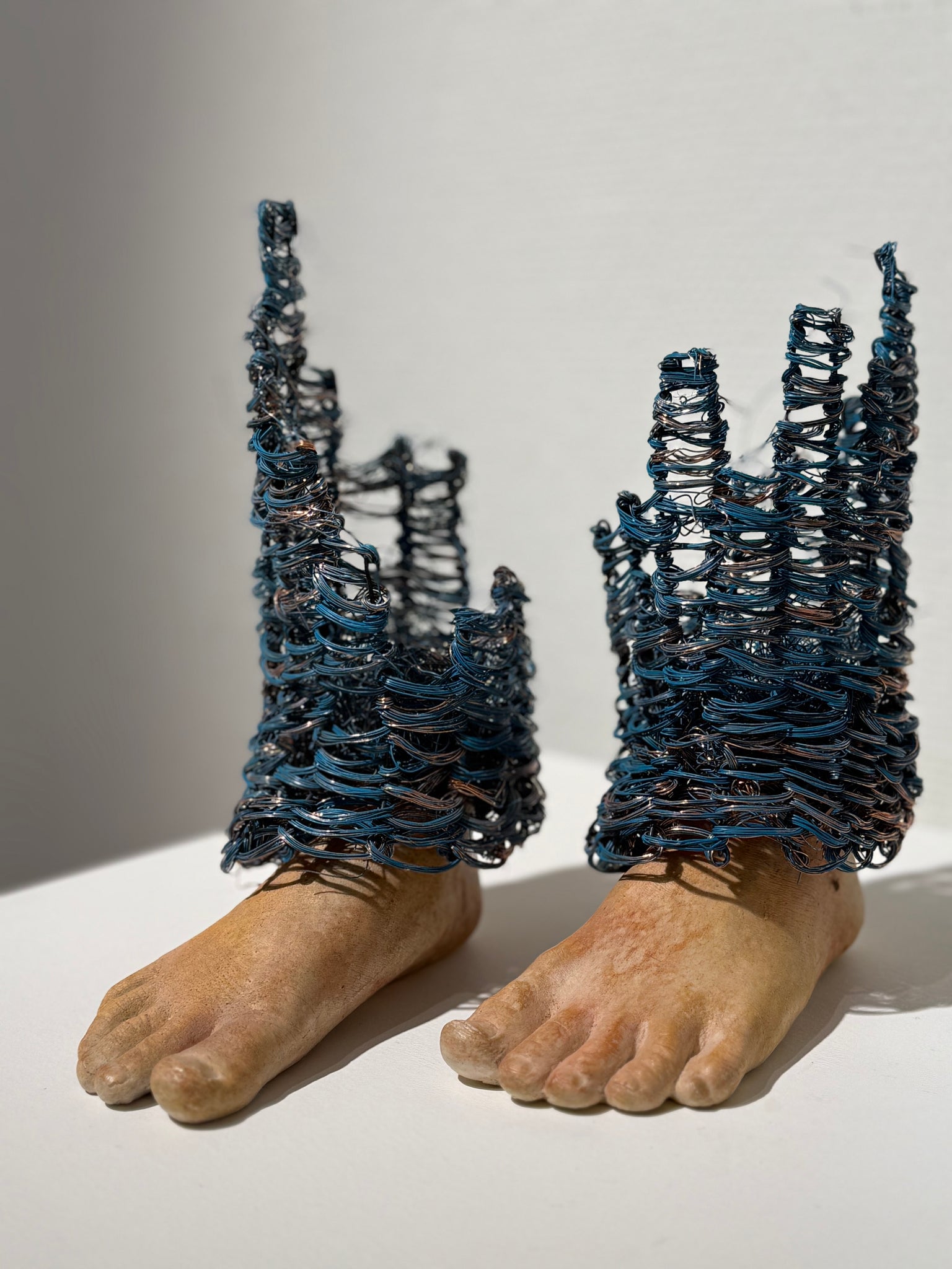 Skulptur, uten tittel, av Lene Kilde. Skulpturen er unik. Teknikk, jesmonite, stål og kopper. Høyde 17cm, bredde 15cm, dybde 16cm. Signert av kunstner. Pris, 18.900,- (Inkludert 5% kunstavgift).