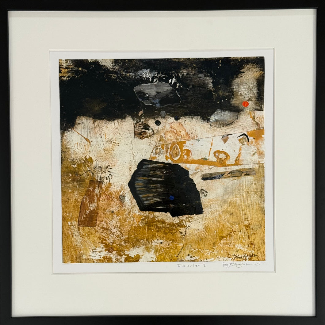 "Element I", Kunstner, Peggy Jørgensen. Mixed media, kommer ferdig innrammet med passepatout og kunstglass. Utvendige mål ferdig innrammet, 50x50. Pris; 10.500,- (Inkludert 5% kunstavgift).